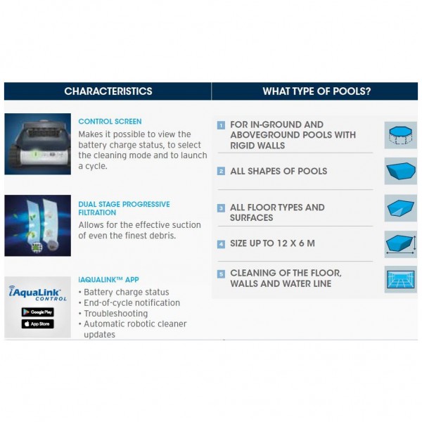 Datorita conexiunii inteligente cu aplicatia mobila iAqualink® controlul este simplu si eficient, astfel incat sa puteti controla starea aspiratorului de piscina si de la distanta.